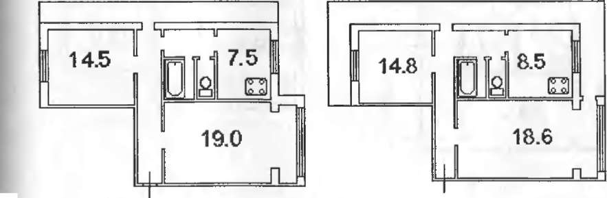 Планировки "чешек" отличаются очень большим разнообразием, рдесь представлены лишь некоторые возможные варианты. Карактерными деталями для них являются многочисленные ралконы-террасы и выход на балкон через эркер соседней комнаты или из коридора.