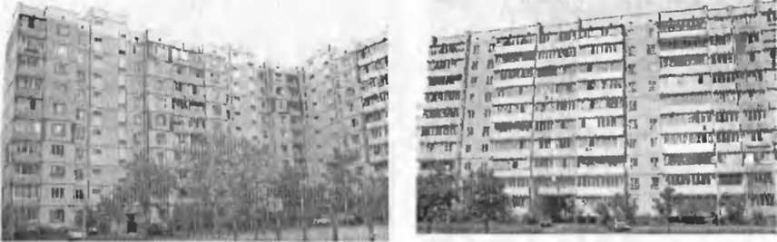 Имеют 9-10 этажей. Есть техэтаж. Один пассажирский лифт и газовые плиты.